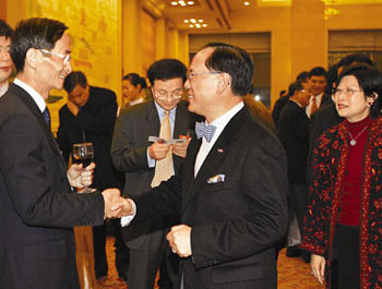 香港特首曾蔭權(quán)在致辭時(shí)指出,香港得到中央的鼎力支持,配合全港市民的努力,當(dāng)外圍情況回穩(wěn),香港相信會(huì)是最先走出衰退的地方之一!拔覒┱埜魑蝗舜蟠怼⒄䥇f(xié)委員全力支持特區(qū)政府,同心攜手,克服困難。”