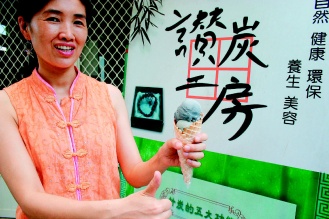竹炭能當冰吃?花蓮縣鳳林鎮(zhèn)贊炭工房把細磨的竹炭粉,摻入糯米粉,制成冰淇淋,有QQ的口感,而且真的有一股炭味,吃起來很不一樣。