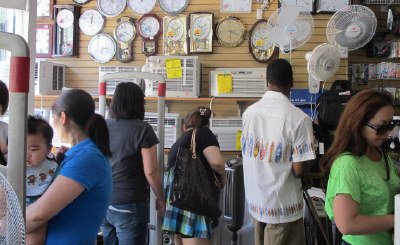位于法拉盛羅斯福大道榕欣電器城負責(zé)人陳先生表示,空調(diào)和風(fēng)扇的熱銷從5月底就已經(jīng)開始,近期店內(nèi)的風(fēng)扇已經(jīng)創(chuàng)下一天銷售百臺的紀錄,而空調(diào)一天賣個幾十臺也不成問題。陳先生指出,今夏屬于分段熱的天氣,雖然尚未出現(xiàn)前年連續(xù)幾天達到百度以上的高溫,但仍舊為店中帶來不少生意,陳先生笑說:“這樣也好,生意不錯但又不會忙不過來!