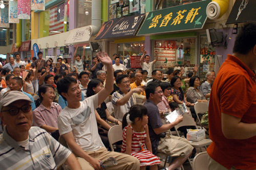 當(dāng)天下午一時許,法拉盛購物中心的大堂內(nèi)已經(jīng)聚集了數(shù)百位華人球迷,座無虛席,二樓的走廊上也站了不少觀眾,其中以男性觀眾為主,也有婦女和兒童。某廣告公司在這里主辦了民眾一起看世界杯的活動,邀請了李昌林、譚琳等華文媒體的專業(yè)主持人在現(xiàn)場解說,觀眾還可以參加抽獎,大獎是紐約至上海的往返機票,F(xiàn)場的舞臺上樹起了大屏幕,會場周圍還有數(shù)臺小電視機。隨著比賽的開始,進入會場觀戰(zhàn)的人越來越多。在加時賽的第26分鐘,西班牙攻入唯一一球,引起了全場的沸騰。據(jù)主辦方介紹,當(dāng)天來現(xiàn)場的觀眾多達千人,而前一天半決賽的觀眾也有700余人。