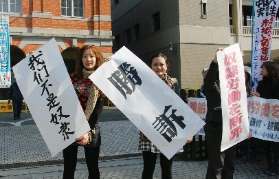 每月加班100個小時,收入只有6萬日元左右,遠(yuǎn)低于最低工資水平;克扣或拖欠支付工資,不支付加班費(fèi)、假日勞動特別補(bǔ)助;不讓加入勞動保險(xiǎn)或社會保險(xiǎn);剛來到公司,就被收繳護(hù)照;工作計(jì)劃與內(nèi)容不一致;在不知情的情況下被租借;長時間規(guī)定時間外作業(yè);遭受暴力毆打,鼻骨骨折;工資被強(qiáng)制存入指定銀行,存折由企業(yè)保管;住在連廁所都沒有的集裝箱內(nèi);被沖壓機(jī)軋斷手指,僅僅做了應(yīng)急措施后,就被帶往機(jī)場,并被威脅“不回國則不但不還錢,還要收違約金”——原本早已經(jīng)被淘汰和唾棄的“原始資本主義”奴隸工制度,卻千真萬確的發(fā)生在21世紀(jì)的發(fā)達(dá)國家——日本的土地上。