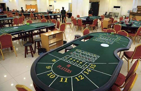 與這些草根階層熱衷的“竹棚斗雞場”的簡陋相比,“邁達賭城”則具有濃郁的巴洛克風格,這里不僅有24小時霓虹閃爍的娛樂表演,還外設高爾夫球場、歌舞廳。初入這座紅褐色的建筑,迎面而來的是一排“撲克機”和“餃子機”。不過,遠道而來的賭客對這些小兒科并不感興趣,他們都直奔大廳兩側的十幾個“百家樂”賭廳。