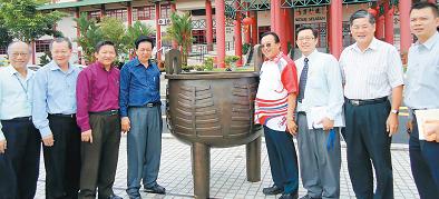 南方學(xué)院院長(zhǎng)祝家華說,銅制的“南方之鼎”由新加坡藝術(shù)家陳瑞獻(xiàn)設(shè)計(jì),在廈門制作,耗費(fèi)5萬令吉,重200公斤,高160公分!笆紫嘣诮舆^火炬后,會(huì)在南方之鼎內(nèi)點(diǎn)燃圣火,過后將永久存放南院,象征人文精神永留于此。”