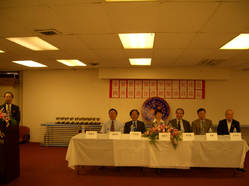 大會(huì)特別邀請(qǐng)的三位主題演講人是:美國(guó)著名的國(guó)際法專(zhuān)家、德克薩斯南方大學(xué)法學(xué)教授周子勤博士、全美華人協(xié)會(huì)顧問(wèn)陳維國(guó)、休斯頓和平統(tǒng)一促進(jìn)會(huì)副會(huì)長(zhǎng)熊偉軍。他們從不同的角度闡述了協(xié)議簽署的必要性。周子勤教授特別用九個(gè)“性”來(lái)表示協(xié)議框架應(yīng)含有的積極意義,分別是:互利性、及時(shí)性、可行性、必要性、品質(zhì)性、漸進(jìn)性、調(diào)整性、解釋性和全面性。陳維國(guó)先生在臺(tái)灣生活了14年,又到美國(guó)生活了五十多年。他表示,兩岸同胞是一家,應(yīng)該進(jìn)行密切的經(jīng)濟(jì)和貿(mào)易活動(dòng),互利互贏。熊偉軍先生強(qiáng)調(diào),兩岸經(jīng)濟(jì)合作框架協(xié)議的協(xié)商和簽署關(guān)系到兩岸經(jīng)濟(jì)合作全面深入發(fā)展,關(guān)系到兩岸共同應(yīng)對(duì)經(jīng)濟(jì)區(qū)域化挑戰(zhàn),關(guān)系到兩岸眾多企業(yè)、行業(yè)和民眾利益。海外僑胞對(duì)這個(gè)重要的協(xié)議非常關(guān)心。