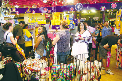 西裔諾加勒斯一家祖孫三代到湖人隊(duì)用品店選購各自中意的服裝、鞋帽。他表示,一直是湖人隊(duì)忠實(shí)球迷,經(jīng)常購買湖人隊(duì)紀(jì)念品,所有紀(jì)念品加起來可辦一個(gè)收藏展。