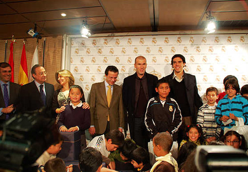 最后,作為皇馬最受歡迎的王牌球員,卡卡和齊達內微笑著充當了一次“圣誕老人”,在近30名各種膚色孩子的歡呼聲中,送出玩具,并為這群小粉絲們簽名合影,現(xiàn)場氣氛達到高潮。