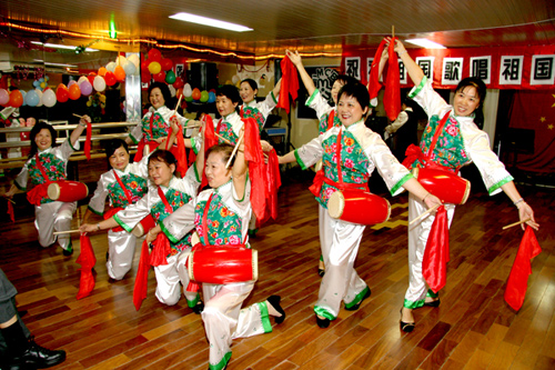 當(dāng)天的聯(lián)歡會(huì)上,婦女會(huì)的姐妹們表演了新創(chuàng)作排練的腰鼓舞蹈,育才學(xué)園小朋友們表演了集體詩(shī)朗誦,趙永平、惠青等朗誦了《祖國(guó)我愛(ài)你》長(zhǎng)詩(shī)。在王燕文小姐領(lǐng)唱下,全體與會(huì)人員還起立演唱了歌唱祖國(guó)的大合唱。隨后,趙永平會(huì)長(zhǎng)、孫總領(lǐng)事以及與共和國(guó)同齡的姐妹們一起切開(kāi)了慶祝祖國(guó)六十周年的生日蛋糕。
