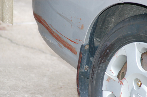 在現(xiàn)場的車輛上仍有血跡。(美國僑報(bào) 張菁攝)