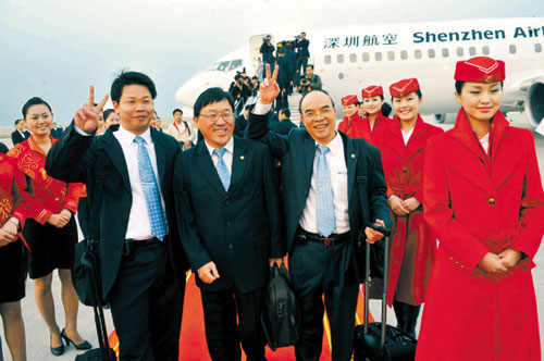 海峽兩岸實(shí)現(xiàn)全面三通,深圳航空的首批旅客見(jiàn)證了歷史。