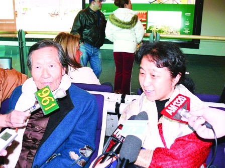 劉面換身穿傳統(tǒng)中式棉襖、藍(lán)色外套和白色圍巾出現(xiàn),雖然經(jīng)過十多小時(shí)的飛行,精神看起來仍然不錯(cuò)。前往接機(jī)的史維會(huì)共同主席列國(guó)遠(yuǎn),特別送上紅色大圍巾予以御寒。
