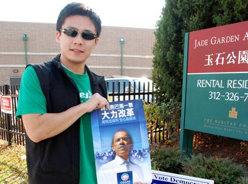 中新網(wǎng)11月6日電 據(jù)《芝加哥華語(yǔ)論壇》報(bào)道,30歲的芝加哥華裔選民羅伯特•李自從有選舉權(quán)以來(lái),從來(lái)沒有參加過(guò)總統(tǒng)選舉投票。當(dāng)?shù)貢r(shí)間十一月四日下午,他來(lái)到了位于華埠“樂(lè)宜居”的投票站,投下了自己神圣的一票。他說(shuō):“我對(duì)新總統(tǒng)寄托希望,美國(guó)需要新的積極而強(qiáng)有力的領(lǐng)導(dǎo)人來(lái)解決各方面面臨的挑戰(zhàn)!