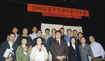 中新網(wǎng)10月16日電 據(jù)美國(guó)《世界日?qǐng)?bào)》報(bào)道,美國(guó)新澤西州華夏中文學(xué)?傂I现苣┰谛轮荼辈康木S羅納市召開(kāi)“2009華夏中文學(xué)校教師年會(huì)”,主題為“在美國(guó)教中文:學(xué)生,內(nèi)容,方法”,來(lái)自各分校的300多名教職員參加了這一年一度的盛會(huì)。