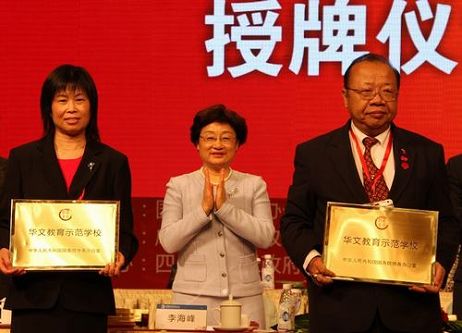 首批示范學校的評選工作從2008年底啟動,經(jīng)過海外華校申報、中國駐外使領館審核和抽樣考察等多個環(huán)節(jié),最終在眾多候選學校中確定了22個國家的58所華校,在前不久召開的世界華文教育大會上,舉行了授牌儀式。