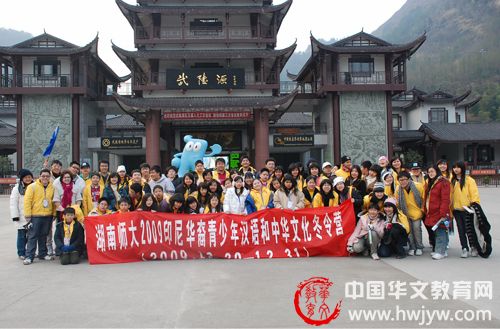 12月28日下午,這群來自印尼的華裔青少年們觀賞了黃龍洞,在那里他們看到了很多奇特的景觀,定海神針、萬年雪松、龍王寶座、火箭升空、花果山、天仙瀑布等,引起連連贊嘆!