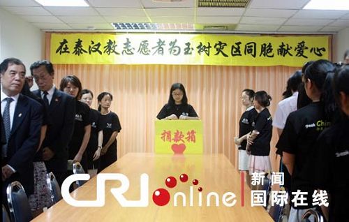 4月20日,在泰國(guó)的漢語(yǔ)教師志愿者代表在曼谷舉行儀式,深切哀悼青海玉樹(shù)地震遇難者,并捐款為災(zāi)區(qū)同胞獻(xiàn)愛(ài)心。國(guó)家漢辦駐泰國(guó)代表龐利、泰國(guó)教育部代表、駐泰漢語(yǔ)教師志愿者代表、孔子學(xué)院院長(zhǎng)等50多人出席了悼念儀式。