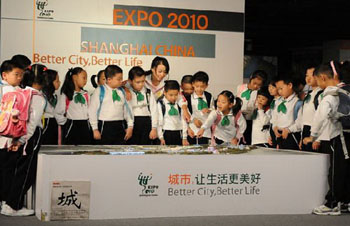 中新網(wǎng)5月17日電 據(jù)上海市僑辦消息,日前,上海市盧灣區(qū)華文教育基地——七色花小學(xué)的操場(chǎng)熱鬧非凡,來自美國(guó)、英國(guó)、澳大利亞、巴西等不同國(guó)家和地區(qū)的同學(xué)和家長(zhǎng)在十個(gè)國(guó)家場(chǎng)館平面模型前擺開了陣勢(shì),模擬世博參觀情景。