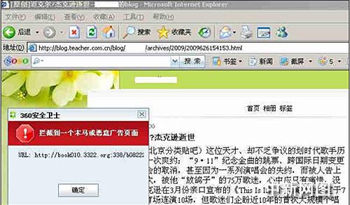 中新網(wǎng)7月1日電 傳奇巨星邁克爾杰克遜去世的噩耗震驚了無數(shù)歌迷,由于杰克遜在全球范圍的巨大影響力,這一不幸事件迅速在互聯(lián)網(wǎng)掀起巨大波瀾。全球歌迷針對此事的搜索量激增,以至讓Google公司以為遭遇了惡意攻擊。而巨大的關(guān)注度和網(wǎng)絡(luò)瀏覽量,也招來了依靠流量傳播木馬的商業(yè)黑客。360安全中心近日截獲到許多利用“杰克遜逝世”吸引用戶的掛網(wǎng)網(wǎng)站。