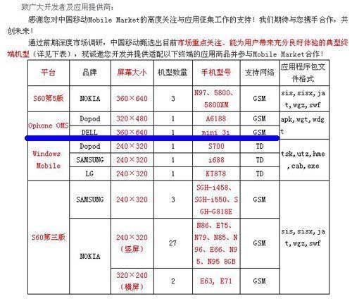 但據(jù)日前曝光的一份中國移動的文件顯示,的確有一款名為戴爾mini 3i的合作機型,支持GSM網(wǎng)絡,屏幕尺寸為360×640。
