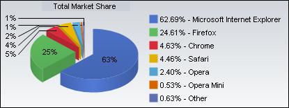 盡管如此,在過去的6個月中,IE市場份額幾乎每個月都要下降一個百分點。Net Applications預(yù)計,到2010年年中,IE份額可能跌至50%。