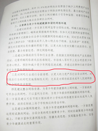 在嚴琦交給記者的提案文本中記者看到,提案中關(guān)于“出重拳為青少年構(gòu)建健康和諧的網(wǎng)絡(luò)環(huán)境”中第三條建議寫著:對網(wǎng)吧行業(yè)進行全面清理,以更大的力度嚴厲打擊非法網(wǎng)吧,對有違法行為的網(wǎng)吧實施強制性關(guān)閉;尤其是對那些縱容未成年人沉迷網(wǎng)絡(luò)的社會網(wǎng)吧堅決取締。