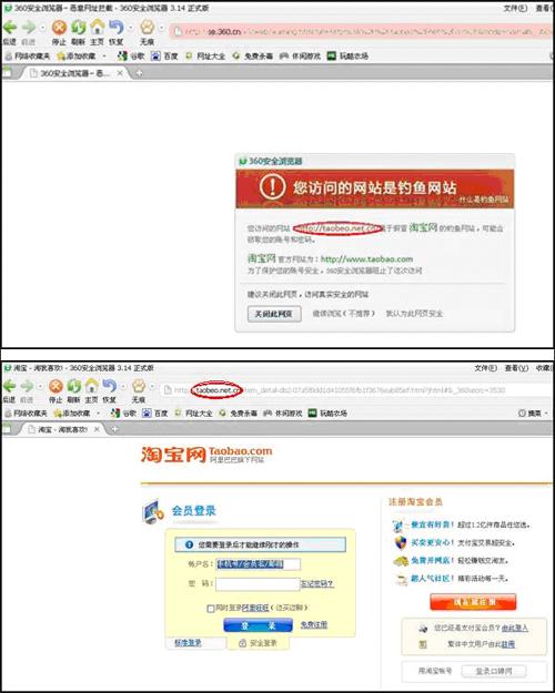 360安全瀏覽器攔截模仿知名網(wǎng)站的釣魚(yú)網(wǎng)頁(yè)