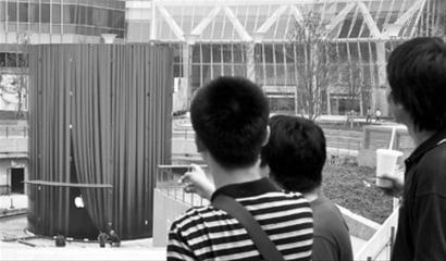 只不過揭開了紅色帷幕的一角,眾多“蘋果粉絲”已經(jīng)按耐不住激動(dòng)的心情,紛紛實(shí)地圍觀這座神秘建筑。
