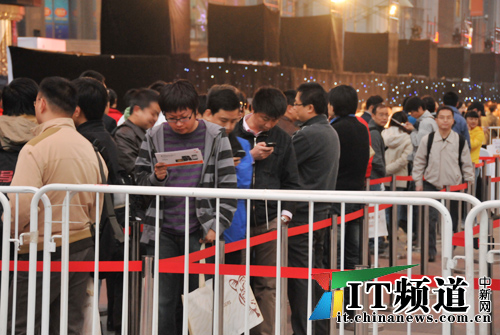 中新網(wǎng)10月30日電 中國(guó)聯(lián)通iPhone手機(jī)今日正式發(fā)布,首售儀式將于今日18時(shí)至次日凌晨在北京“世貿(mào)天階”舉行。記者在現(xiàn)場(chǎng)看到,雖然今晚天氣寒冷,但已經(jīng)有近300名消費(fèi)者在現(xiàn)場(chǎng)排隊(duì)等候購(gòu)買(mǎi)聯(lián)通iPhone手機(jī)。