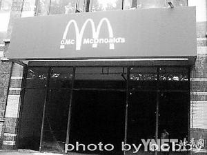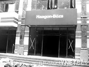 原來,這些商鋪的招牌乍一看是大牌,可再仔細看看,不對啊,怎么全部是山寨版?真是大跌眼鏡!從東往西第一家是大名鼎鼎的運動品牌李寧,“錯了!這個叫李明LI-MING!钡诙沂切≠Y最愛的星巴克STARBUCKS,“又錯了,這個叫BUCKSSTAR”。其他的大牌也如法炮制,必勝客成了“必勝糊”,哈根達斯成了“哈根波斯”,包括屈臣氏、seven-eleven等名牌都被惡搞了一把。最令人叫絕的是,麥當勞的經(jīng)典m形標志,被多加了一個彎,成了“3扇門”。記者看到,這些掛了招牌的商鋪并沒有一家正式開張。
