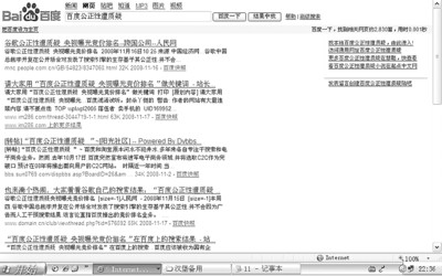 公眾質(zhì)疑:“請(qǐng)以 ‘百度公正性遭質(zhì)疑 央視曝光競(jìng)價(jià)排名’進(jìn)行搜索”的帖子,目前正在各大論壇風(fēng)傳。