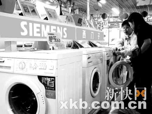 “600多元的雙缸洗衣機(jī)降到399元,1200元的全自動降到800多元,不少品牌在1000元左右‘打斗’!比涨坝浾咴谔K寧電器看到,小天鵝5公斤的半自動雙缸洗衣機(jī)只賣388元,而美菱6公斤半自動雙缸洗衣機(jī)價格也只要499元,而且還送100元的禮品。全自動洗衣機(jī)方面,5公斤左右的洗衣機(jī)無論是國產(chǎn)的美菱、海爾、小天鵝還是外資的三洋、LG、惠而浦的價格都降到了1000元左右。據(jù)營業(yè)員介紹,海爾、榮事達(dá)、小鴨、松下、TCL等國內(nèi)外知名品牌洗衣機(jī)全線降價20%左右,最高降幅將達(dá)到40%。