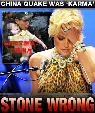 莎朗斯通那些違反人類道德的言論,遭遇全民譴責。西安的一些音像店昨日已將與她有關的作品下架,其網(wǎng)絡下載電影也遭到網(wǎng)友抵制。記者還發(fā)現(xiàn),在一些美國網(wǎng)站上,美國網(wǎng)友也展開了對她的批判。