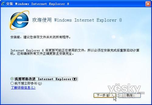 2.進(jìn)入IE8正式版安裝向?qū)Ы缑妫?/p>