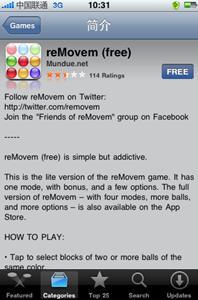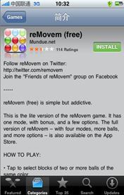 ⑷ 點(diǎn)擊“Top Free”進(jìn)入免費(fèi)游戲目錄,選中一項(xiàng)免費(fèi)游戲(如reMovem),進(jìn)入確認(rèn)安裝界面