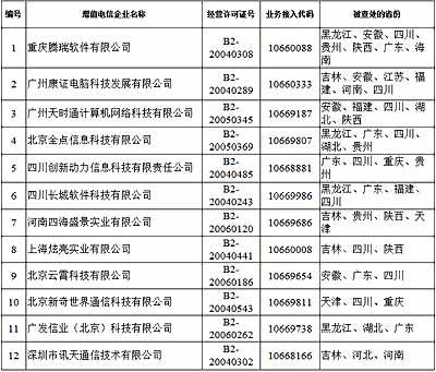 公告顯示,違規(guī)企業(yè)中12家跨地區(qū)經營的增值電信企業(yè)被三個以上省(自治區(qū)、直轄市)通信管理局查處。