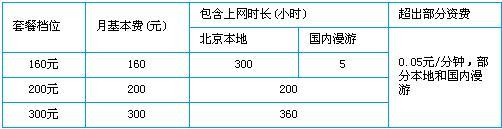 套餐采用了時長計費的方式,分為月付和年付,月付費套餐包括了160元 、200元、300元三大檔。而年付費套餐則包括了6大檔位,分別為本地160半年套餐、本地160一年套餐、全國200半年套餐、全國200一年套餐、全國300半年套餐、全國300一年套餐。