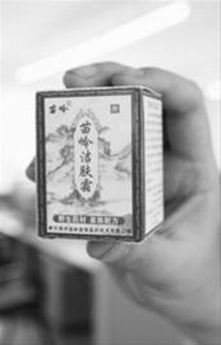 昨日(10月14日),記者走訪發(fā)現(xiàn),大連有部分藥房在銷售“黔東南州苗嶺苗族醫(yī)藥技術有限公司”生產(chǎn)的苗嶺潔膚霜。在位于長春路的一家藥店,記者詢問銷售人員,小孩得了濕疹,用什么藥好?銷售人員便向記者推薦這種苗嶺潔膚霜,“如果你們家孩子有濕疹,我推薦你使用苗嶺潔膚霜,另外這藥對蚊蟲叮咬和奶癬效果也不錯。而且這藥屬于中草藥,特別適合孩子使用。 ”