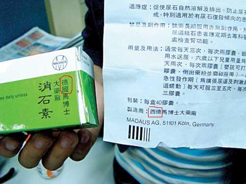11月14日,在南寧市安吉大道一藥店,腎結(jié)石患者李先生買了一種名叫“消石素”的德國產(chǎn)進(jìn)口藥,結(jié)果發(fā)現(xiàn)該藥的生產(chǎn)商名稱“表里不一”。