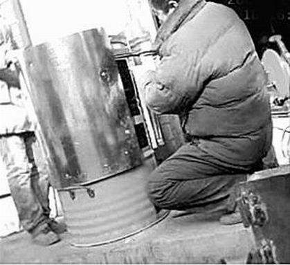 昨天(12月24日),記者來(lái)到天橋區(qū)臧家屯小區(qū)附近,一條街旁有幾家加工鐵爐子的業(yè)戶,其中一家業(yè)戶前擺著一些大鐵桶,業(yè)戶在一個(gè)藍(lán)色的大鐵桶前忙活著。記者走近一看,業(yè)戶在加工地瓜烤爐,他給藍(lán)色的大鐵桶包上半米高的白色鐵皮!澳氵@里加工地瓜烤爐嗎?多少錢(qián)一個(gè)?”記者問(wèn)!300多元一個(gè)!睒I(yè)戶指著正在加工的大鐵桶說(shuō),“這個(gè)烤爐已經(jīng)有人買(mǎi)了,你如果想要烤爐,先挑個(gè)鐵桶吧!