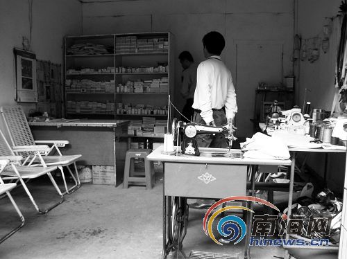 執(zhí)法人員在“張醫(yī)生牙科”的診所看到,這家診所的醫(yī)生沒有執(zhí)業(yè)證書,診所也沒有《醫(yī)療機(jī)構(gòu)執(zhí)行許可證》,屬于非法行醫(yī)。診所的負(fù)責(zé)人說,這家牙店是今年8月開始營業(yè)的,沒有多少生意。最后,執(zhí)法人員下發(fā)了行政處罰通知,勒令其停業(yè),并沒收了兩臺(tái)牙科綜合治療機(jī)!叭绻蛔屑(xì)看,我們還以為是家裁縫店呢!”記者跟隨執(zhí)法人員來到了一家裁縫店,裁縫店里還有診所營業(yè),還有兩個(gè)病人正躺上椅子上打吊針。記者看到,店門口放著一臺(tái)裁縫機(jī),機(jī)子旁邊擺了一個(gè)桌子,上面擺滿了顏色各異的線,而墻壁一側(cè)掛滿了褲鏈,另一側(cè)墻壁掛滿了空的輸液瓶。