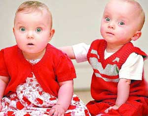 2007年5月,英國斯塔福德郡巴頓特倫特市一對夫婦生下了一對體重相差1倍的“奇跡雙胞胎”,當(dāng)?shù)艿苷材匪埂烟厣聛頃r,體重竟然只有孿生姐姐哈麗特一半大!令人欣慰的是,13個月后,這對“大小雙胞胎”已長成了差不多同樣大小的健康嬰兒。