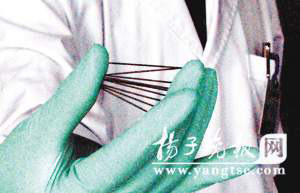 據(jù)消化科主任張醫(yī)生介紹,通過拍片檢查他們發(fā)現(xiàn),病人胃部9根縫衣針已經(jīng)深深地插進(jìn)胃壁,還形成局部潰瘍。好在這些縫衣針距離十二指腸還有三四厘米距離,沒有掉進(jìn)去,不然將更難取出。他們通過無痛胃鏡伸進(jìn)張某胃部,用手術(shù)鉗慢慢將縫衣針與胃部剝離,然后再用磁鐵吸棒伸進(jìn)去將縫衣針吸出。就這樣磁鐵吸棒先后進(jìn)入張某胃部5次,用了2個(gè)小時(shí),將張某胃里9根4厘米長的縫衣針全部吸出,幾分鐘后,該女子胃部疼痛癥狀逐漸消失。(吳勝)