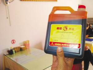 “我們是正規(guī)加盟店!眻(zhí)法人員來到位于桂林路附近的一家變態(tài)烤翅店,經(jīng)理拿出所有的開店和加盟手續(xù),稱他們手續(xù)齊全。執(zhí)法人員讓該經(jīng)理拿出了制作變態(tài)烤翅的調料——“BT油”,他拿出了一個5升的小白桶。該經(jīng)理說,他們加盟的時候,北京總店就給他們提供這種調料,總店稱是“商業(yè)秘密”,從來沒透露過是什么制成的。他們也用其他調料代替過,但做出來的雞翅都不如用“BT油”做的好吃。