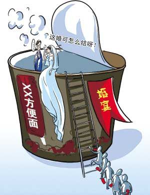 原來,這家酒店因頭一天發(fā)生“疑似食物中毒”事件,婚宴即將開席時(shí),衛(wèi)生部門突然來通知,稱調(diào)查結(jié)果沒出來前,不允許酒店炒菜。但由于之前已簽訂5對新人的婚宴合約,所以只好為前來慶賀的近千賓客,提供大桶方便面充饑。