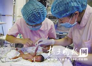 記者昨天上午來到淮安市婦幼保健院新生兒科時,只見在醫(yī)護人員的幫助下,冉冉的母親閔曉元正在用奶瓶給她喂奶,記者注意到冉冉的脖子上有一個銀制長命鎖。閔曉元笑著告訴記者:“這是我們特意為女兒買的,希望她長命百歲。冉冉這個名字也是慶賀她重獲新生的,但愿她的以后就像早晨的太陽一樣冉冉升起”。站在一旁的父親劉峰望著這個來之不易的女兒則百感交集。據其介紹,他與妻子婚后一直沒有小孩,去年年底在南京做了“人工助孕”手術后,妻子懷孕第24周時于今年5月30日在盱眙縣某醫(yī)院產下一對試管雙胞胎女嬰。由于這對雙胞胎嚴重早產,在醫(yī)學上稱之為極不成熟兒,小女兒剛出生就不幸夭折,體重只有800克的大女兒生命體征也不穩(wěn)定,于是連夜轉至淮安市婦幼保健院進行搶救治療。他告訴記者,他們當時真的以為女兒根本沒有存活的希望,是醫(yī)院救了他女兒。前幾天醫(yī)院通知他昨天女兒可以出院時,他就在盱眙縣城一飯店訂了20桌酒席,宴請所有親朋好友于昨天中午一起熱鬧熱鬧慶賀女兒出院,F在飯店的客人都催他好幾遍了,讓他趕快將寶貝女兒帶回盱眙。他說:“醫(yī)院就是我們的恩人,現在還欠醫(yī)院7萬元治療費,我們一定慢慢還”。