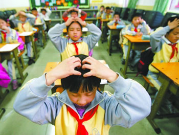 十一長假過后,西四北四條小學的學生就開始學做新版眼保健操了。多數(shù)老師都認為新版眼保健操動作簡單易學,而且增加了腳趾活動和按壓頭部的內(nèi)容,比過去有不少進步。但新操中“腳趾抓地”這樣的隱蔽動作,不會脫了鞋檢查,不容易監(jiān)督。