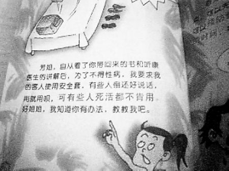 芳姐以前輩對(duì)新人“傳幫帶”的口吻,將有關(guān)的預(yù)防性病知識(shí)娓娓道來(lái)。令某些網(wǎng)友驚呼“很雷”的,是冊(cè)子中芳姐以直白的語(yǔ)言傳授了說(shuō)服“客人”使用安全套的“招數(shù)”。甚至有網(wǎng)友戲謔地稱“這真的是XX行業(yè)的內(nèi)部工作手冊(cè)”;“看到后來(lái)明白了,是性工作者的健康安全教育手冊(cè)”。也有網(wǎng)友對(duì)相關(guān)背景進(jìn)行了別樣的解讀:“看來(lái)這個(gè)地方某種行業(yè)很強(qiáng)大,強(qiáng)大到政府部門要用這種方法宣傳性病知識(shí)”。