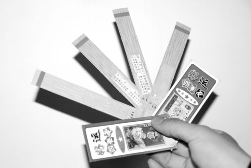 該棚子內(nèi)除了抽簽外,還有大量的精美“小賭卡片”,上面印制著5角、1元和2元人民幣圖案,還寫著“20元以上獎(jiǎng)學(xué)金到廠家兌獎(jiǎng),20元以下獎(jiǎng)學(xué)金由小賣部支付,即開即樂”等字樣。