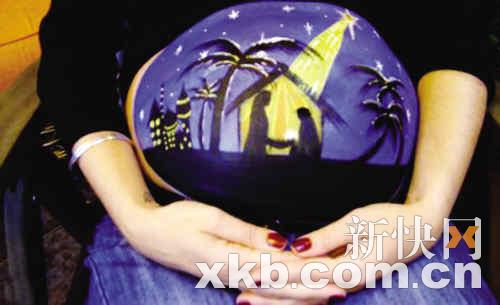 據(jù)英國(guó)《每日電訊報(bào)》12月22日?qǐng)?bào)道,圣誕節(jié)即將來(lái)臨,懷孕媽媽都擁有一款獨(dú)一無(wú)二的圣誕卡——在自己凸起的肚皮上畫畫,拍成照片,再寄給親朋好友。據(jù)專業(yè)畫師說(shuō),孕婦肚皮是絕佳的人體彩繪部位:空間大,可以天馬行空地創(chuàng)作,此外還可以為肚里面的寶寶做按摩。孕婦們也認(rèn)為這是一個(gè)絕妙的主意。據(jù)說(shuō),每一位收到“肚皮卡片”的朋友都感到很興奮。