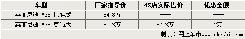 目前,英菲尼迪4S店內(nèi)老款M還有部分車型在銷售,09款M車型要到4月底才會到店,現(xiàn)已全面開始接受預(yù)定,訂金5萬元。銷售人員還表示,現(xiàn)在老款M35正在降價促銷,消費(fèi)者目前購車除了可以得到2萬元的現(xiàn)金優(yōu)惠外,還可以得到商家贈送的原廠汽車裝飾,只是在車型顏色方面較少,主要以銀色車型為主。
