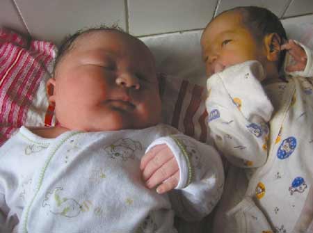 產(chǎn)婦生產(chǎn)時,體重達(dá)到200斤,孩子在孕后期的34周以后急速生長,很快突破妊娠警戒線,通過B超發(fā)現(xiàn)超出了一般兒童的生長,只能剖腹產(chǎn)。據(jù)介紹,造成孩子超大的因素有3種可能:一是母親營養(yǎng)過剩,二是遺傳因素,三是糖尿病或隱性糖尿病。然而這個超大嬰兒的父母親都非常健康,所以醫(yī)生認(rèn)為,可能是前兩種原因造成的。(付秀蓮 武長鵬)
